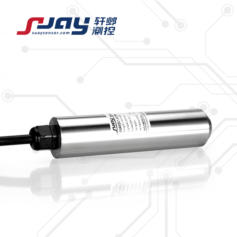 SUAY20液位传感器 液位变送器 数字液位传感器 水位传感器采用MEMS技术为核心的高灵敏度硅压阻感压芯片,是基于流体静力学原理,通过对液体压强的测量转换为液位高度。量程0-0.1m...1m...200m可以按用户要求设定量程,投入式测量,也可安装式测量。精度:0.5%,0.25%,0.1%可选。适用于水箱水位测量,水池水位监测,河道、水库、地下水位监测等领域。