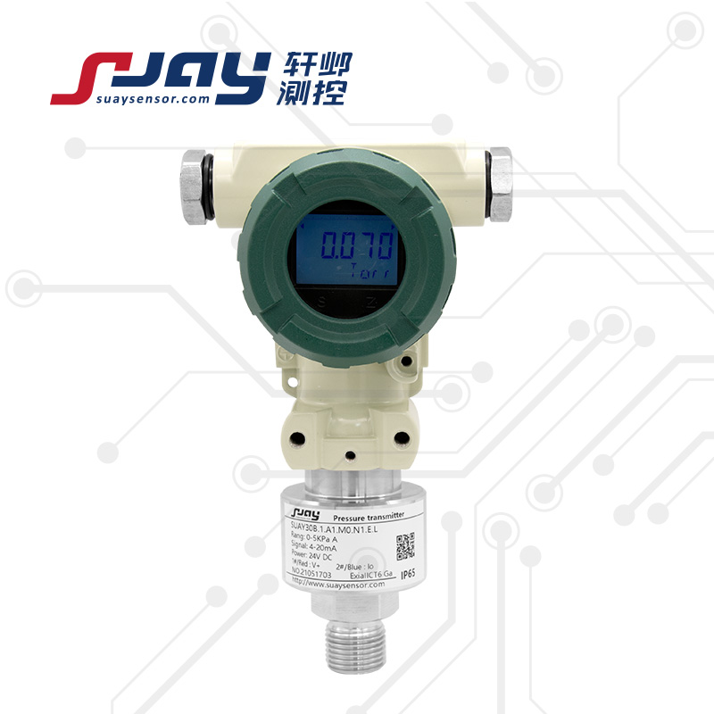 | SUAY30 | -100KPa~0 …10KPa ...7MPa | 4:±0.1%FS 2:±0.25%FS 1:±0.5%FS | A1:4-20mA V1:0-5V V2:1-5V V3:0-10V D:RS485 V0:定制 | M1:M20*1.5 M2:G1/4 M6:KF16 可选 M3:G1/2, M7:KF25 M0:定制 | N1:直出2米 N2:赫斯曼插头 N3:航空插头 | S:抗干扰 L:显示 E:本安防爆 |